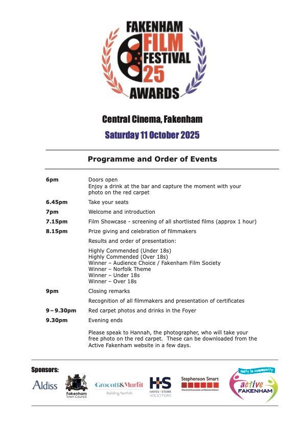 For more information about the competitions go to Filmfreeway and search Fakenham